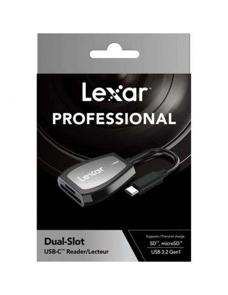 Il lettore a doppia fessura Lexar Professional USB-C™, progettato con un'interfaccia USB 3.2 Gen1, è inoltre retrocompatibile con le porte USB 3.1 e 2.0.