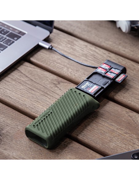 Trasporta le schede di memoria e trasferisci i dati utilizzando la custodia per lettore di schede ad alta velocità CreateMate di PGYTECH, che presenta uno slot per schede UHS-II SDXC e uno slot per schede microSDXC UHS-II, nonché spazio per riporre quattro schede SD, quattro schede microSD e quattro schede nano SIM. È classificato IP54, che aiuta a proteggere da cadute, sporco e schizzi, ed è compatibile plug-and-play con Windows, Mac, Linux e Android utilizzando un cavo USB-C 3.2 Gen 1 integrato da 5 Gb/s.