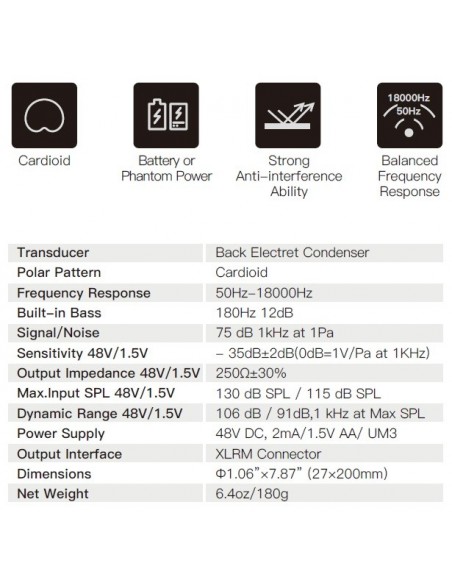- oppure possiamo sfruttare la phantom cioè l’alimentazione via XLR quindi sono sufficienti dei normalissimi cavi musicali che passano da XLR femmina a XLR maschio per poterlo andare ad agganciare sulle cineprese o videocamere che hanno un’alimentazione interna, sui registratori esterni che hanno un’alimentazione phantom a 48 volt esterna o su mixer audio