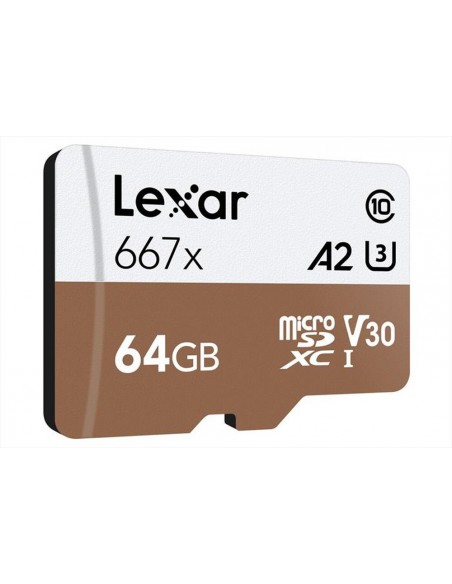 Progettata per action camera e droni, e certificata per GoPro, la scheda di memoria microSDXC UHS-I Professional 667x da 64 GB di Lexar ha una capacità di archiviazione di 64 GB e supporta velocità di lettura massime di 100 MB/s e velocità di scrittura massime di 90 MB/s. Questa scheda è stata progettata anche con la classificazione V30 Video Speed Class, che garantisce velocità di scrittura minime di almeno 30 MB/s. Tutto ciò consente agli utenti di immergersi nella videografia e nella fotografia di sport estremi in 4K, Full HD e 3D.