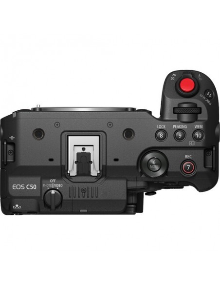 Dotata di un sensore CMOS full-frame da 7K di nuova generazione, la Canon EOS C50 Cinema Camera è una compatta potenza per le tue esigenze video e fotografiche. La EOS C50 è in grado di registrare video 3:2 Open Gate in 4K a 120 fps e video raw fino a 7K a 60 fps, oltre a foto da 32 MP in modalità fotografica. Basta selezionare tra le modalità dedicate a foto e video per un’esperienza di ripresa ibrida intuitiva. Tra le ulteriori funzionalità avanzate della C50 troviamo il Dual-Pixel CMOS AF II, la registrazione simultanea in crop 2K, l’integrazione nativa con Frame.io Camera-to-Cloud e il supporto del protocollo XC per il controllo remoto. Un’impugnatura superiore staccabile inclusa ti offre due ingressi XLR a 3 pin e controlli onboard per regolazioni facilmente accessibili.