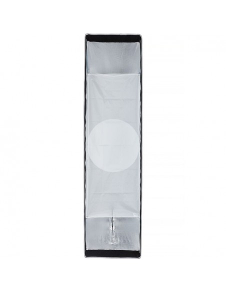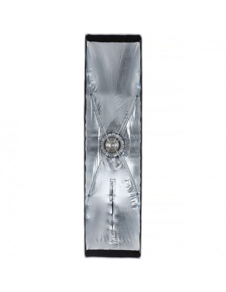 L'interno riflettente in argento massimizza l'emissione luminosa distribuendola uniformemente. Il softbox è dotato di una griglia rimovibile che elimina la dispersione luminosa e fornisce il necessario controllo direzionale per un'illuminazione selettiva.