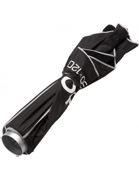 Questo softbox è dotato di una piastra deflettrice che, se necessario, si trasforma in un modificatore in stile beauty dish. Questo permette di ottenere un effetto incisivo simile a quello di un beauty dish, piuttosto che di un softbox. È inoltre dotato di un deflettore interno bianco e di un diffusore esterno per un'illuminazione morbida e uniforme.