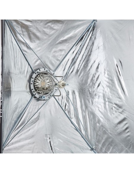 L'interno riflettente in argento massimizza l'emissione luminosa distribuendola uniformemente. Il softbox è dotato di una griglia rimovibile che elimina la dispersione luminosa e fornisce il necessario controllo direzionale per un'illuminazione selettiva.