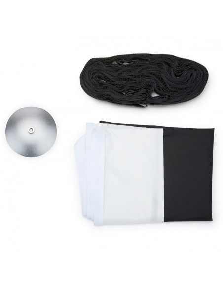 Questo softbox è dotato di una piastra deflettrice che, se necessario, si trasforma in un modificatore in stile beauty dish. Questo permette di ottenere un effetto incisivo simile a quello di un beauty dish, piuttosto che di un softbox. È inoltre dotato di un deflettore interno bianco e di un diffusore esterno per un'illuminazione morbida e uniforme.