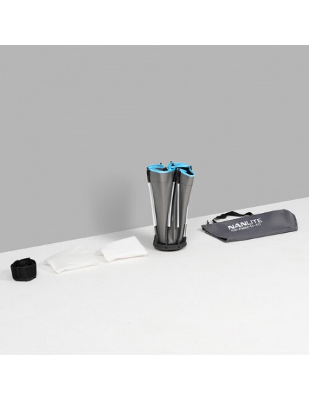 Facile da installare e da riporre: Il softbox, le centine e l'anello di velocità sono integrati in un'unica unità che ne garantisce la durata. Per completare l'installazione, l'utente deve solo tirare su e fissare le otto centine nell'anello di velocità. Quando si ripone il softbox, non è necessario rimuovere il diffusore o la griglia, in modo da renderlo comodo per l'uso successivo.
