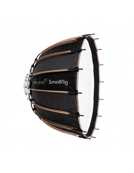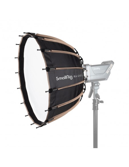 SmallRig RA-D55 Parabolic Softbox è un versatile accessorio per luce soffusa con diametro di 55 cm. Il design universale del supporto Bowens lo rende compatibile con SmallRig RC 120D/RC 120B/RC 220D/RC220B e altre luci con supporto Bowens di altre marche.