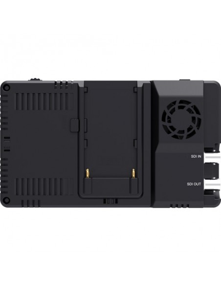 Le opzioni di alimentazione includono una piastra batteria serie L integrata e una porta di ingresso di alimentazione CC. È inoltre disponibile un'uscita di alimentazione CC ausiliaria che consente di far funzionare determinate telecamere senza l'alimentazione del monitor. Le batterie e i cavi sono venduti separatamente. Per garantire un'adeguata dissipazione del calore, una ventola sul retro del monitor si accende automaticamente ogni volta che la luminosità della retroilluminazione supera 80. Il LUT6S fornisce un 1/4 "-20 filettatura di montaggio sul fondo e una sul lato destro.
