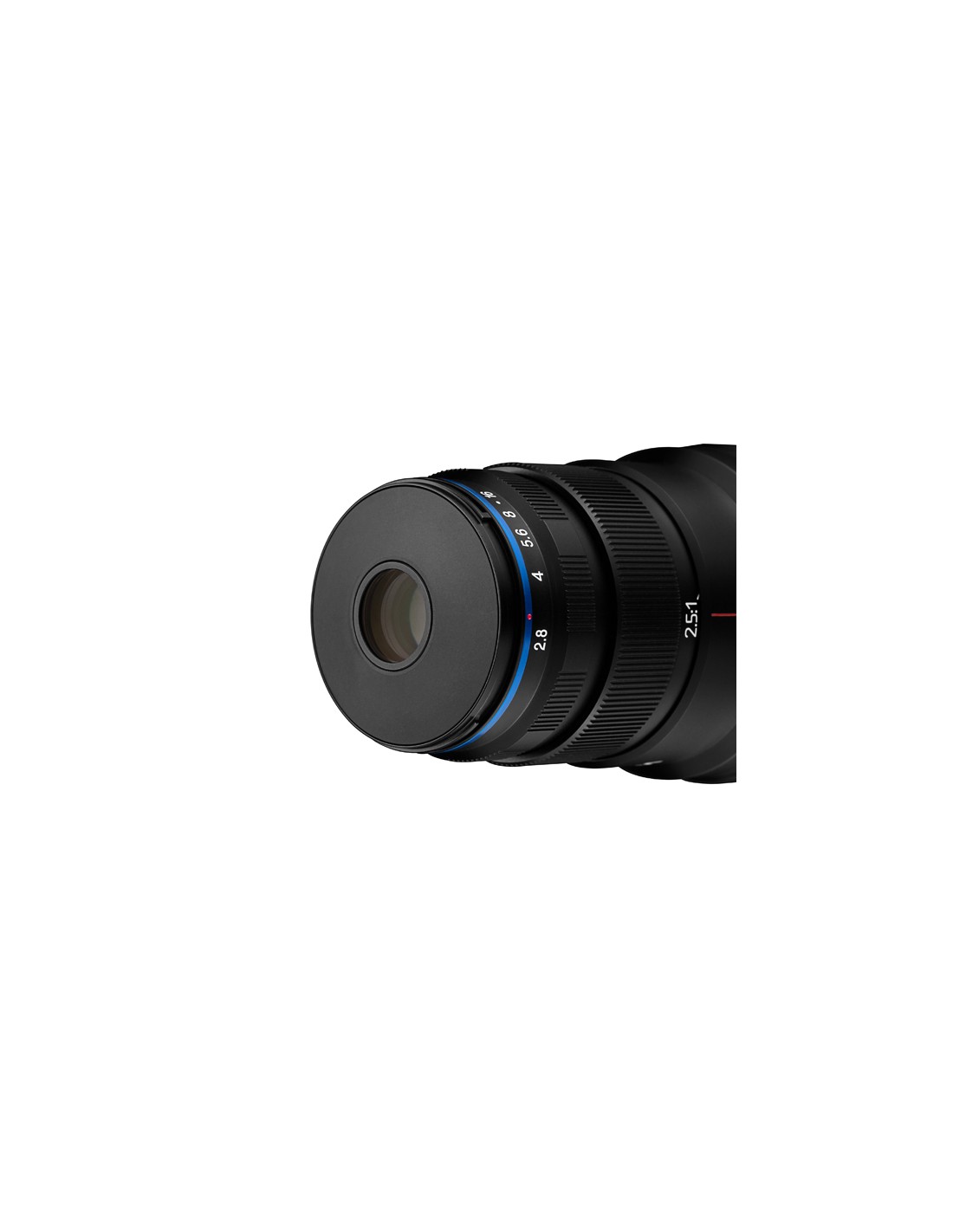 Quest`ottica è ottimizzata per riprese macro con ingrandimenti da 2.5 a 5 volte la dimensione reale. L`obiettivo è progettato per lavorare con una distanza di 45mm per ingrandimento a 2.5x e 40mm a 5x. con un barilotto più compatto di obiettivi simili. Questo permette una migliore luminosità e riprese sul campo più facili.
