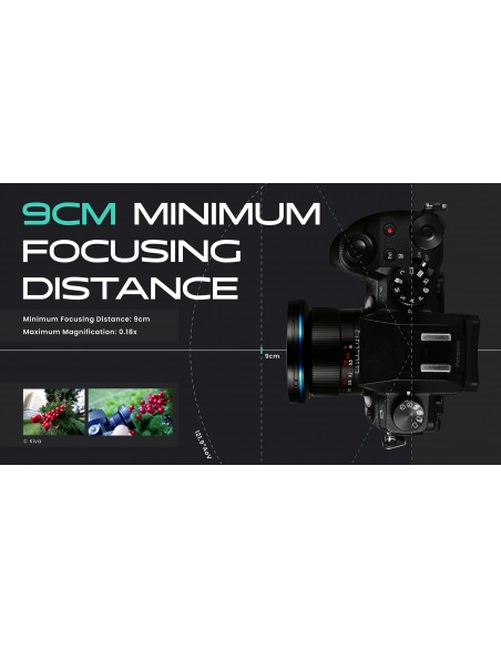 La distanza minima di messa a fuoco è di soli 9 cm, che favorisce la creazione di una profondità di campo ridotta.
