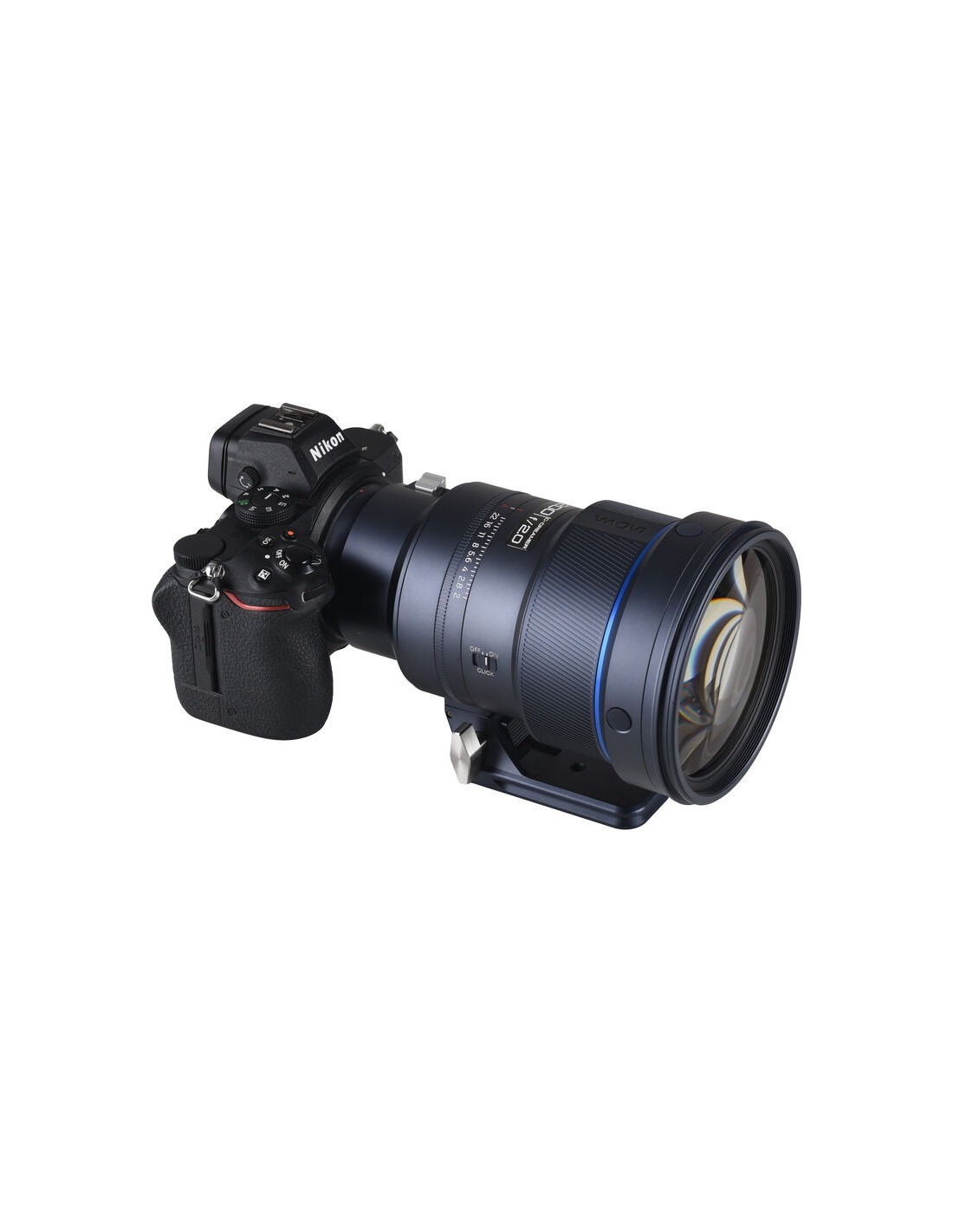 Laowa 200mm f2 offre un supporto integrato compatibile con lo standard ARCA Swiss, il più diffuso nell`industria, per un facile aggancio al treppiede.