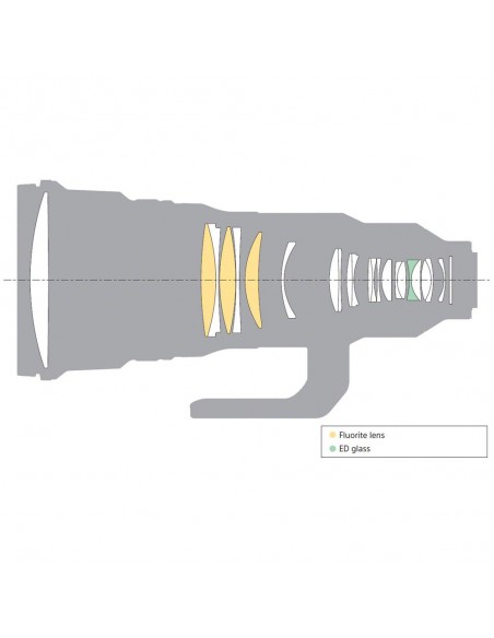 Un design ottico innovativo, con tre elementi in fluorite, riduce gli elementi nella parte anteriore del cilindro dell'obiettivo per ridurre il peso a soli 2.895 g. Anche le componenti in resistente lega di magnesio ne riducono il peso. Portabilità e praticità sensazionali e un equilibrio perfetto permettono un funzionamento semplice e agile per scatti a mano e su monopiede.