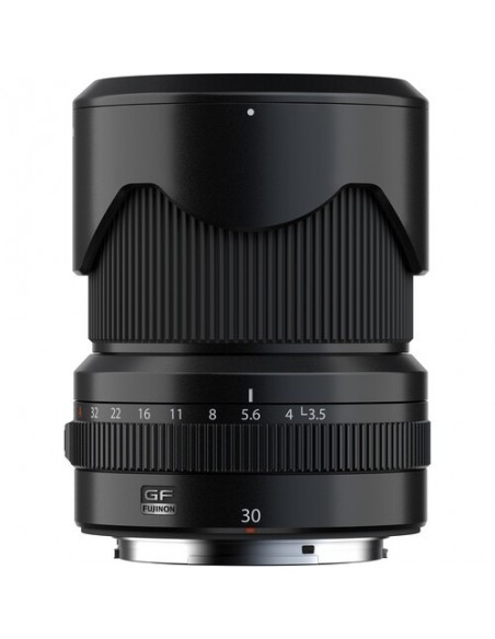 - GF30mmF3.5 R WR pesa solo 510g e misura 99,4mm con un diametro massimo di 84mm. Inoltre, il design sottile si bilancia bene su una fotocamera GFX, rendendo il kit facile da trasportare. Il paraluce in dotazione può anche essere fissato all'indietro, per ridurre l'ingombro quando non lo si utilizza.