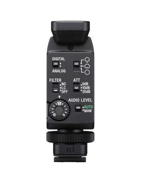 Se connesso tramite il supporto multi-interfaccia di una fotocamera compatibile con interfaccia audio digitale integrata, il segnale audio viene trasferito direttamente alla fotocamera in formato digitale evitando qualsiasi distorsione. Un semplice selettore garantisce inoltre la compatibilità con un’ampia gamma di fotocamere con interfaccia analogica.