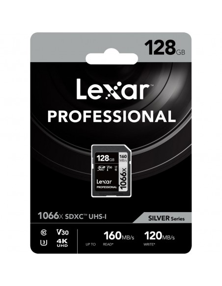 La scheda SDXC™ UHS-I Lexar® Professional 1066x Serie SILVER è progettata per fotocamere DSLR o mirrorless, e ti permette di registrare e trasferire in velocità foto in alta qualità e video in Full-HD 4K UHD con velocità di lettura fino a 160MB/s, e di scrittura fina a 120MB/s1. Queste schede accelerano di molto il flusso di lavoro dall’inizio alla fine, e massimizzano la tua creatività.