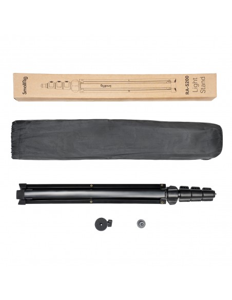 Il supporto luminoso SmallRig RA-S200 è leggero e portatile. Il suo foro filettato da 1/4" supporta torcia elettrica, luce anulare, luce di pannello, microfono, luce COB a basso watt e altri accessori. L'altezza regolabile di 56-200 cm e la lunghezza piegata di 56 cm ne aumentano la compattezza. Realizzato principalmente in lega di alluminio, questo articolo è dotato Piedini spessi 20 mm, abbastanza resistenti da sopportare fino a 4 kg. Viene fornito anche con una custodia e una testa a sfera in metallo, adatta a diversi scenari di ripresa.