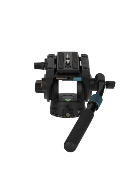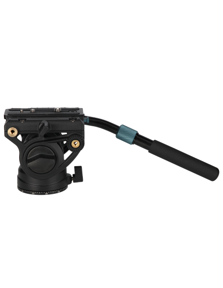 È importante che i movimenti verticali e orizzontali possano essere fatti sempre senza gradini, lisci e anche con una piccola resistenza. Questo è ciò che la testa con una è per un'ammortizzazione liscia ad alte prestazioni. La base contribuisce anche a una panoramica pulita con la sua opzione di rotazione a 360 gradi.