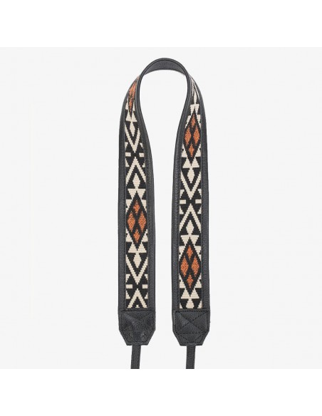 Cinturino regolabile per fotocamera realizzato con tessuto di cotone fatto a mano di Rajhastan (India) e morbida pelle bovina premium sul retro.
