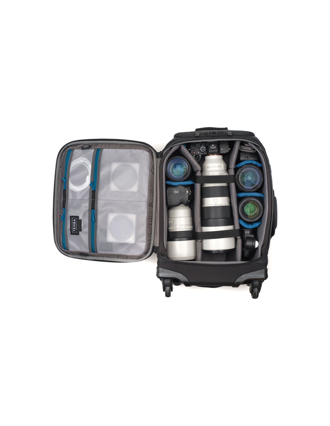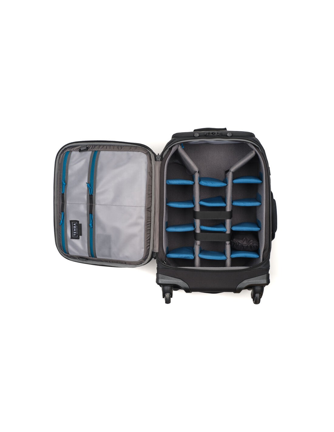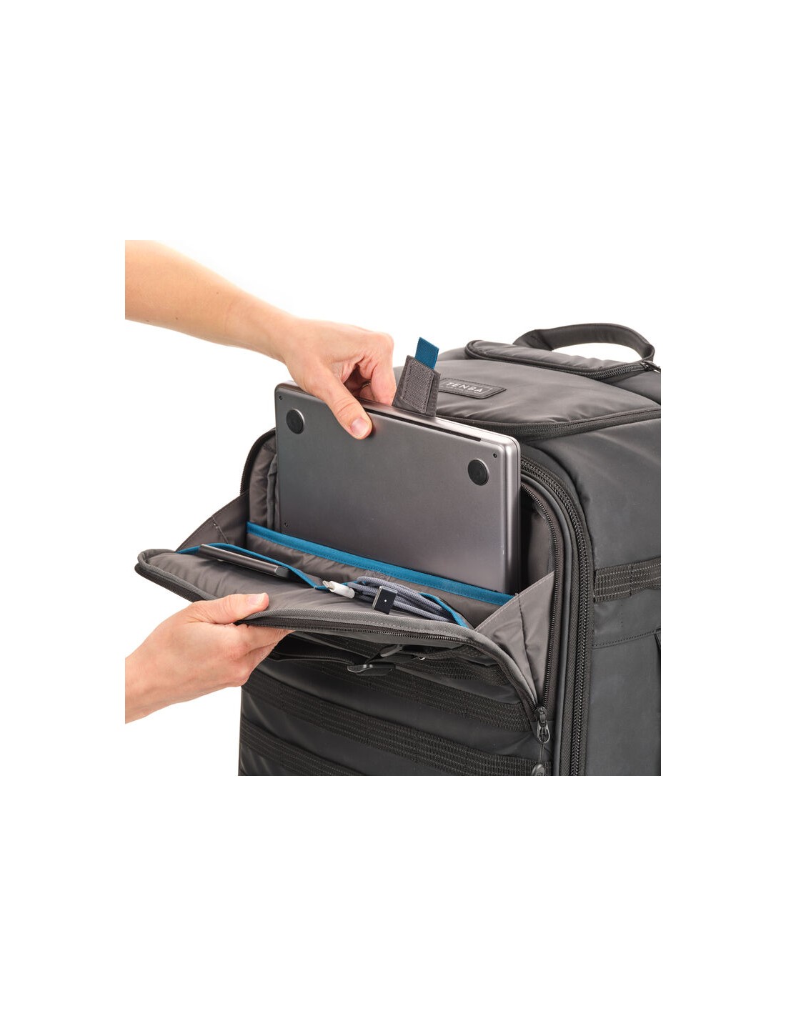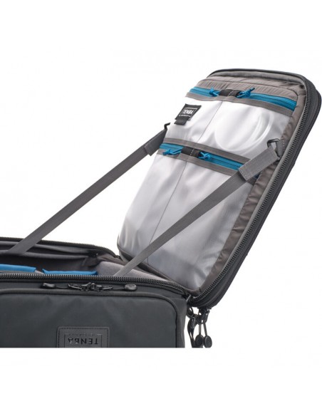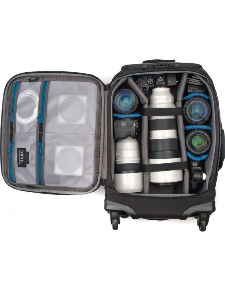 Lo zaino con ruote Axis V2 di Tenba è una borsa versatile che offre sia un trasporto agevole e comodo su ruote per le strade e gli aeroporti, sia la praticità di un trasporto a zaino rapido e confortevole quando necessario. La capienza di 28 litri è dotata di divisori interni imbottiti per due fotocamere DSLR o mirrorless e fino a sette obiettivi. Realizzato con un telaio leggero in alluminio, offre la resistenza di un bagaglio con la praticità di uno zaino. Può ospitare obiettivi lunghi fino a 200-600 mm o 400 mm f/2.8, accessibili rapidamente tramite l'apertura superiore. La tasca laterale esterna rinforzata permette di riporre un gimbal, un treppiede o una borraccia. Il pannello MOLLE consente di fissare l'attrezzatura all'esterno dello zaino per un accesso rapido e semplice durante le riprese. L'Axis V2 è conforme alla maggior parte delle normative sul bagaglio a mano delle compagnie aeree, ma è consigliabile verificare con la propria compagnia prima della partenza.
