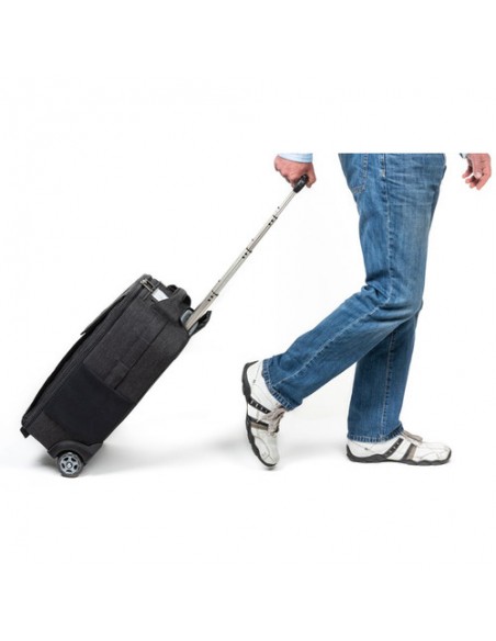 Oltre a poter contenere comodamente l'attrezzatura fotografica, un laptop e un tablet, l'interno del coperchio dello scomparto principale è dotato di due tasche organizer in rete con cerniera per riporre facilmente penne, biglietti da visita e piccoli dispositivi elettronici. Sono incluse quattro maniglie per garantire flessibilità durante il trasporto o lo spostamento della valigia mobile, mentre una maniglia superiore telescopica a quattro stadi extra lunga, una maniglia superiore non telescopica ed entrambe le maniglie laterali e un supporto per i piedi con maniglia integrata rendono il tutto più semplice per raccogliere e posizionare Airport Advantage XT nelle cappelliere degli aerei o nel bagagliaio dell'auto.