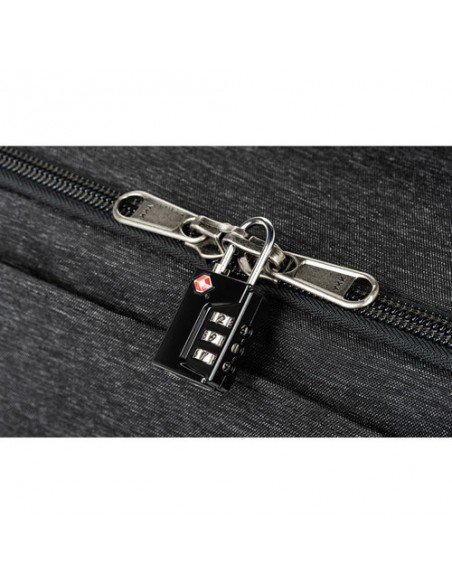 Le due linguette adiacenti della cerniera dello scomparto principale sono dotate ciascuna di fori per i grilli, che consentono un lucchetto accettato TSA disponibile separatamente per mantenere al sicuro gli oggetti all'interno della custodia mobile