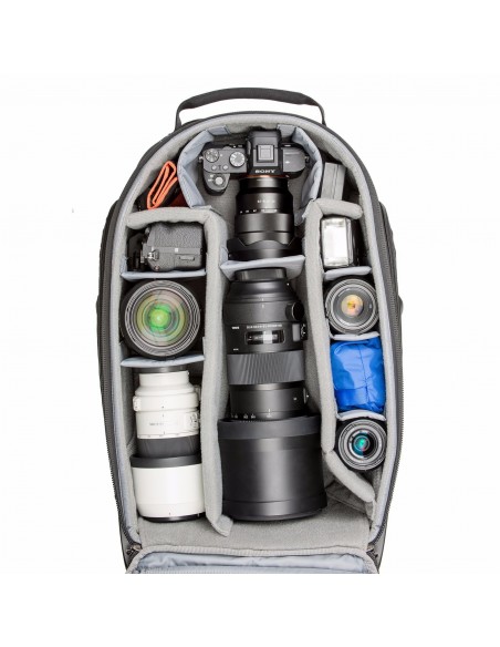 - I divisori regolabili consentono una vestibilità personalizzata per la tua DSLR o attrezzatura Mirrorless