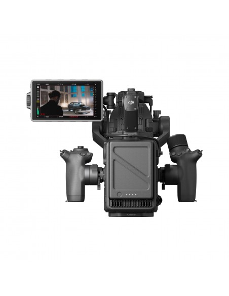 Questa combinazione include la videocamera principale full-frame Zenmuse X9-6K e un gimbal a 4 assi, oltre a una serie di componenti modulari per monitor, messa a fuoco e controllo.
