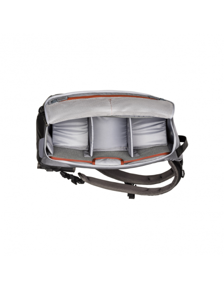Costruito per adattarsi perfettamente al corpo, il PhotoCross 13 è progettato per essere ruotato da dietro a davanti per un facile accesso nel vano della fotocamera. L'accesso allo scomparto della fotocamera è quindi fornito da un pannello con cerniera rivolto verso l'alto con un'apertura verso l'alto di 180°. Lungo l'interno di quel pannello con cerniera ci sono due tasche organizzative in rete con cerniera che possono essere utilizzate per riporre e organizzare batterie della fotocamera, schede di memoria o piccoli dispositivi elettronici. All'interno dello scomparto della fotocamera e verso il lato dello zaino che si appoggia a chi lo indossa è presente una tasca a bustina con spazio per un computer portatile da 13", mentre sei divisori regolabili e rimovibili consentono di configurare lo spazio dello scomparto in base alla specifica attrezzatura fotografica collocata all'interno .