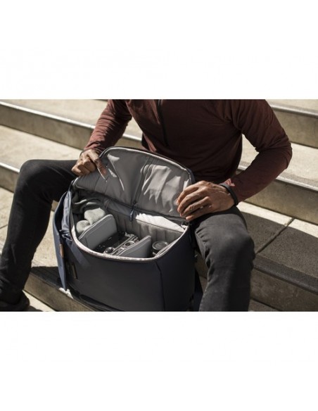 L'interno dello zaino è dotato di una tasca con cerniera e tasche dedicate per un tablet da 12,9", un laptop da 16", caricabatterie e cavi. Riponi e organizza batterie, schede di memoria, piccoli dispositivi elettronici o oggetti personali nelle tasche laterali con cerniera. L'esterno di ogni apertura laterale presenta un'ampia tasca aperta per una borraccia, un treppiede o un ombrello. Ogni tasca laterale è inoltre dotata di cinghie di trasporto esterne con passanti per attrezzatura. Lunghe cinghie di trasporto esterne e ulteriori passanti per attrezzatura lungo la superficie dello zaino consentono di fissare attrezzatura, accessori o indumenti ripiegabili al pannello frontale. Queste cinghie possono essere utilizzate anche per fissare oggetti sul fondo dello zaino.