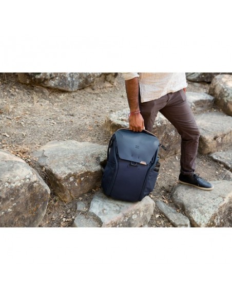 Trasporta la tua borsa fotografica e altri oggetti essenziali con lo zaino Everyday da 30 litri di Peak Design . Questa borsa versatile è progettata per fotografi, creatori multimediali o chiunque cerchi uno zaino dalle dimensioni regolabili e comprimibile. Le diverse chiusure magnetiche sulla patta superiore consentono di regolare l'altezza dello zaino da 52,1 a 62,2 cm. L'interno è dotato di tre divisori per impilare gli oggetti nello scomparto principale. I divisori hanno superfici pieghevoli che possono essere configurate per ammortizzare e trattenere gli oggetti contro le aperture laterali con cerniera dello zaino. Le aperture laterali sono posizionate in modo da essere rivolte verso di te quando lo zaino viene ruotato da dietro in avanti con entrambi i lati rivolti verso l'alto. I divisori consentono di scegliere quali oggetti sono più rapidamente accessibili dai lati.