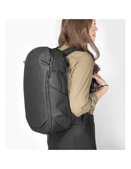 Funziona perfettamente con i cubi e le buste Peak Design, venduti separatamente. Si adatta ai cubi della fotocamera Peak Design, ma solo nella sua forma espansa. Per un trasporto ottimale dell'attrezzatura fotografica, consigliamo lo zaino da viaggio più grande da 45 litri.