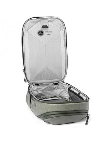 Funziona perfettamente con i cubi e le buste Peak Design, venduti separatamente. Si adatta ai cubi della fotocamera Peak Design, ma solo nella sua forma espansa. Per un trasporto ottimale dell'attrezzatura fotografica, consigliamo lo zaino da viaggio più grande da 45 litri.