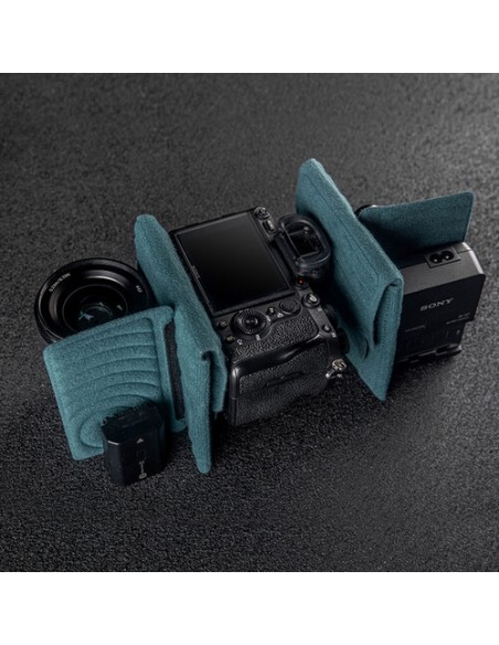 - Lo spazio interno conserva e organizza ordinatamente sia l'attrezzatura fotografica che gli elementi essenziali per la vita