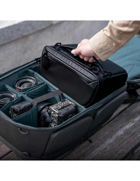 Lo zaino nero OneMo 2 di PGYTECH ha una capacità di 25 litri ed è una borsa fotografica all-in-one progettata per fotografi professionisti. Questa combinazione di zaino e borsa a tracolla può soddisfare diverse esigenze. Lo spazio interno scientificamente strutturato conserva ordinatamente sia l'attrezzatura della fotocamera che gli elementi essenziali per la vita. Lo scomparto anteriore aggiornato supporta l'espansione a forma di V e a forma di H per ospitare uno stabilizzatore cardanico e altro ancora. L'ampia apertura posteriore consente l'imballaggio piatto e le partizioni interne sono spesse e flessibili per fornire una vestibilità sicura e consentire una facile personalizzazione.
