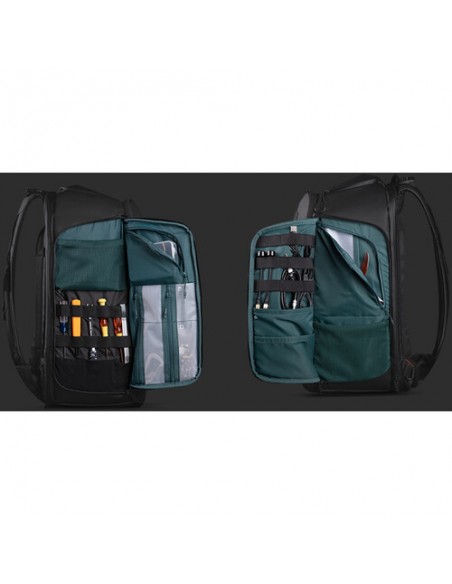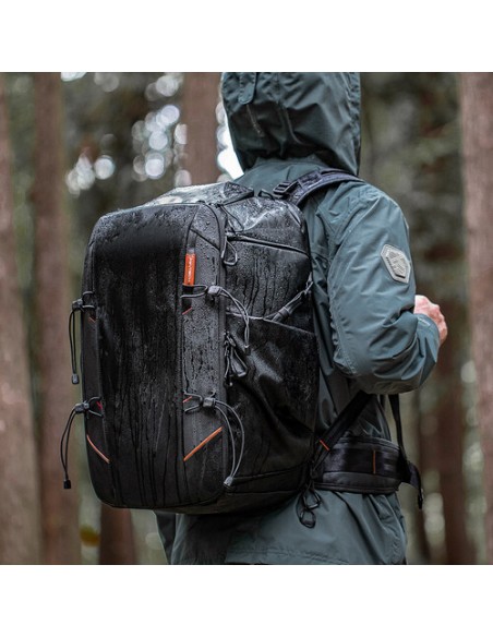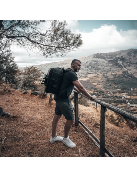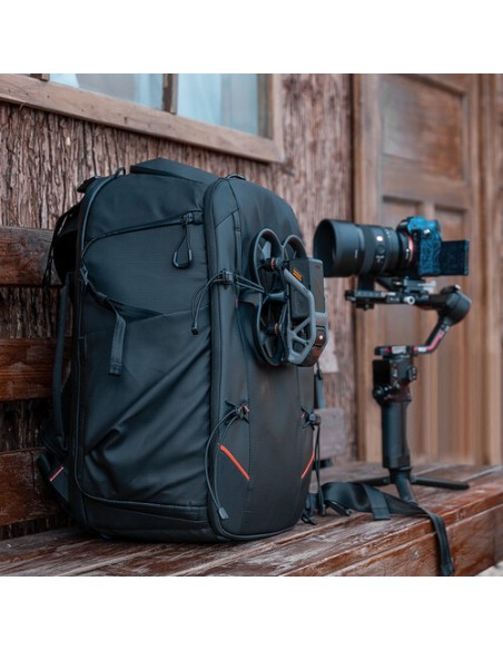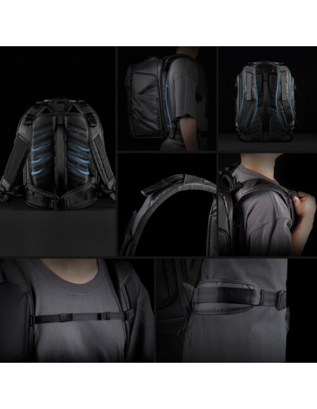 Per aiutarti a trasportare tutta questa attrezzatura comodamente, PGYTECH ha incorporato una serie di funzioni di trasporto. Le due spalline principali sono a forma di S e sono riempite con schiuma EVA avvolta in tessuto a maglia SCUBA per mantenere la sua forma e alleviare la pressione. Una cinghia toracica regolabile e una cinghia in vita imbottita possono diffondere il carico e possono lavorare con la cinghia stabilizzatrice per evitare movimenti eccessivi mentre si cammina. Con lo zaino legato, il pannello posteriore ergonomico a forma di arco con una cresta di ventilazione aiuta ad alleviare lo stress sulla schiena e riduce al minimo il sudore.