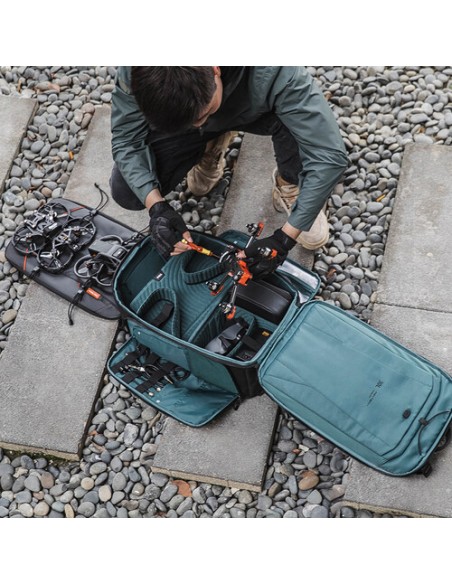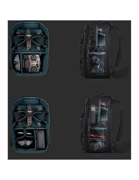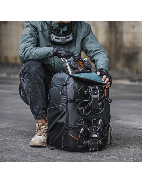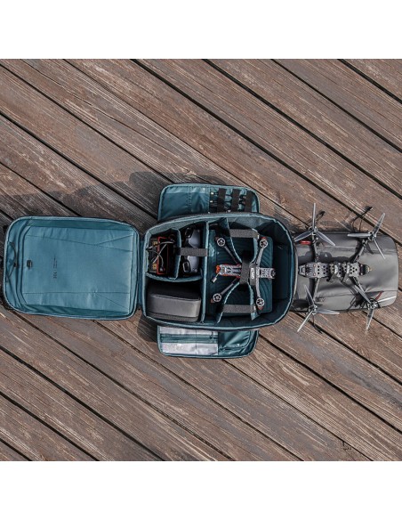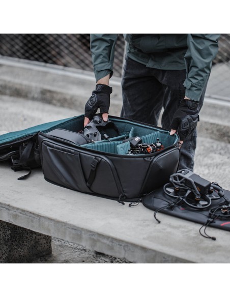 Appositamente progettato per droni da corsa FPV fino a 5" o droni della serie DJI Mavic, lo zaino OneMo FPV Drone di PGYTECH offre un'enorme quantità di opzioni di archiviazione ed è progettato per rendere facile recuperare la tua attrezzatura. Il pannello frontale esterno è in grado di contenere fino a due droni da corsa da 3-5" tramite quattro elastici integrati. Il sistema di imballaggio e organizzazione Z-fold lay-flat consente a quel lembo di essere posto sul pavimento o sul tavolo, offrendoti un facile accesso alla sezione principale senza dover rimuovere i droni. L'interno offre divisori in schiuma personalizzabili per un telecomando, occhiali e attrezzature aggiuntive e due sezioni accessori laterali offrono ancora più spazio di archiviazione. Trasportare tutto è fatto per essere confortevole con un sistema ergonomico di cinghie e imbottitura.