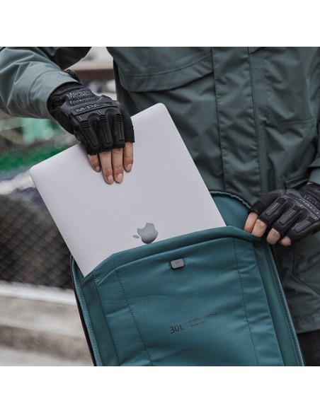 - Tasca AirTag: una tasca interna può contenere un Apple AirTag opzionale per aiutarti a tracciare e localizzare lo zaino in caso di smarrimento o furto.
