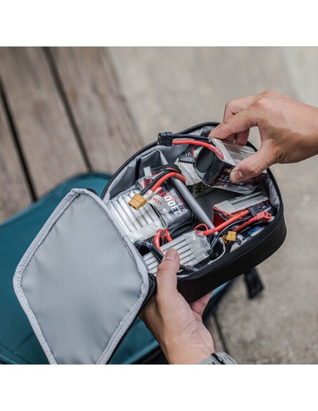 - Scomparto principale: la sezione principale utilizza divisori a strappo imbottiti per creare sezioni per soddisfare le tue esigenze specifiche, ma è principalmente progettata per contenere un telecomando, occhiali e la borsa della batteria a prova di esplosione inclusa.