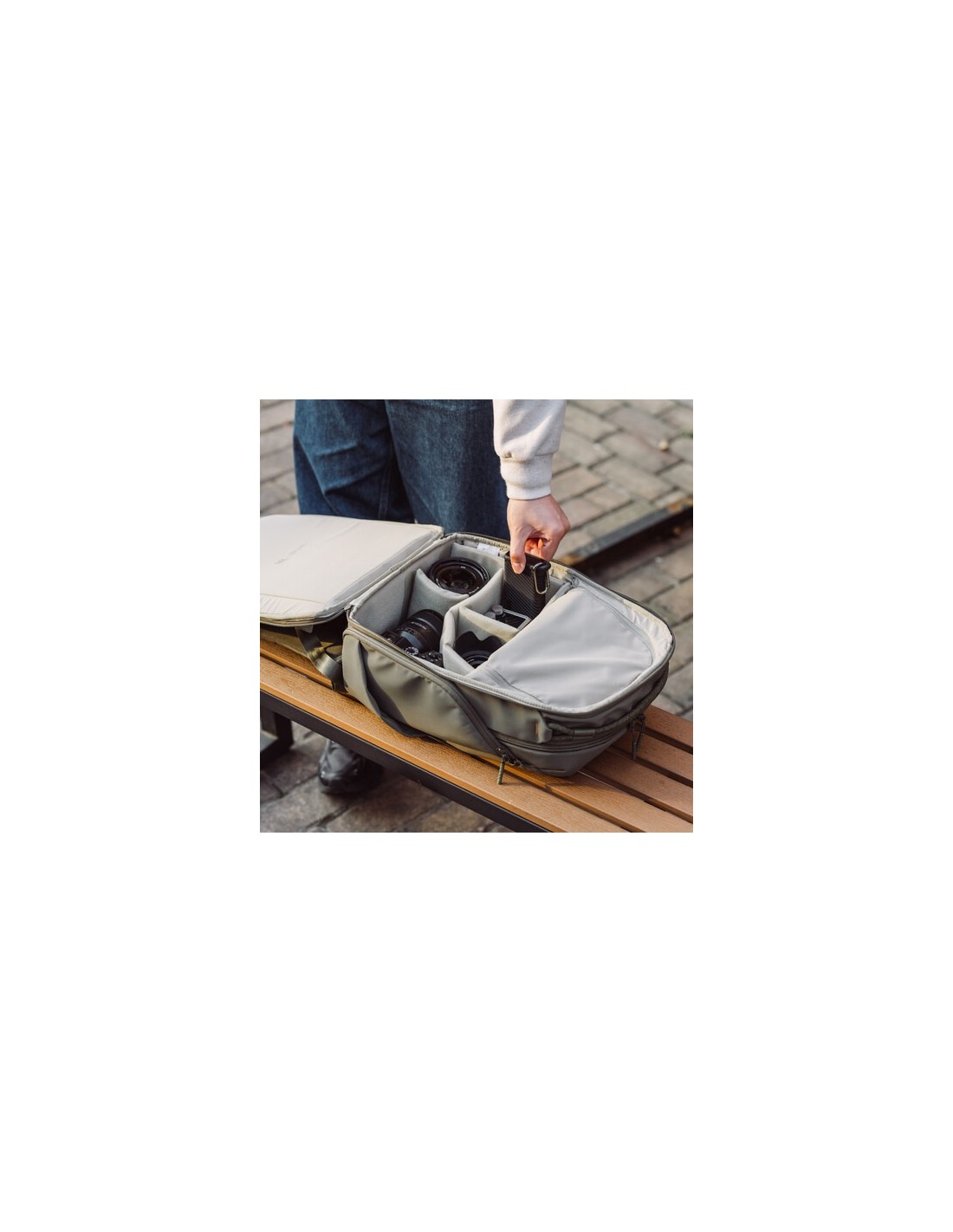 Trasporta il tuo necessario per i viaggi o gli spostamenti quotidiani con lo zaino OneGo Lite da 16 litri di PGYTECH . Questo zaino leggero è progettato per contenere la tua fotocamera DSLR o mirrorless standard e fino a tre obiettivi o accessori fotografici nello scomparto inferiore. Ha una tasca dedicata per laptop che può contenere dispositivi da 14". Questo zaino ha un'apertura posteriore completa a 180° per un facile riempimento e svuotamento. Il vano portaoggetti superiore e lo scomparto fotografico inferiore possono essere rimossi se lo desideri. Trasporta il tuo treppiede o una borraccia nelle tasche apposite. Puoi anche fissare il treppiede o altri accessori alla parte inferiore utilizzando le cinghie per accessori incluse.
