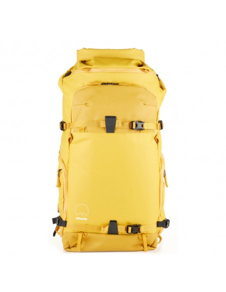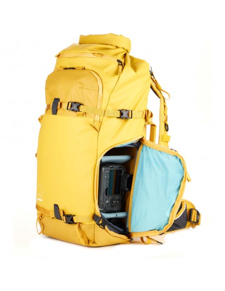 - Il caricatore superiore Shimoda Designs disponibile separatamente può essere fissato contro le cinghie dello zaino per contenere un piccolo kit di droni o una fotocamera di medie dimensioni insieme a un obiettivo 24-70mm f/2.8 o 70-200mm f/2.8 attaccato sul petto di chi lo indossa