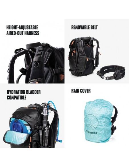 Questa borsa versatile e multiuso può soddisfare le esigenze combinate del fotografo on-the-go, del creatore multimediale, dell'escursionista o del viaggiatore del mondo dell'avventura. Oltre alle funzionalità della borsa, Shimoda ha ridisegnato il sistema di imbracatura per essere altamente personalizzabile per qualsiasi utente e ha incluso la possibilità di cambiare le cinghie dello zaino con quelle opzionali per una vestibilità ancora più personalizzata e confortevole.