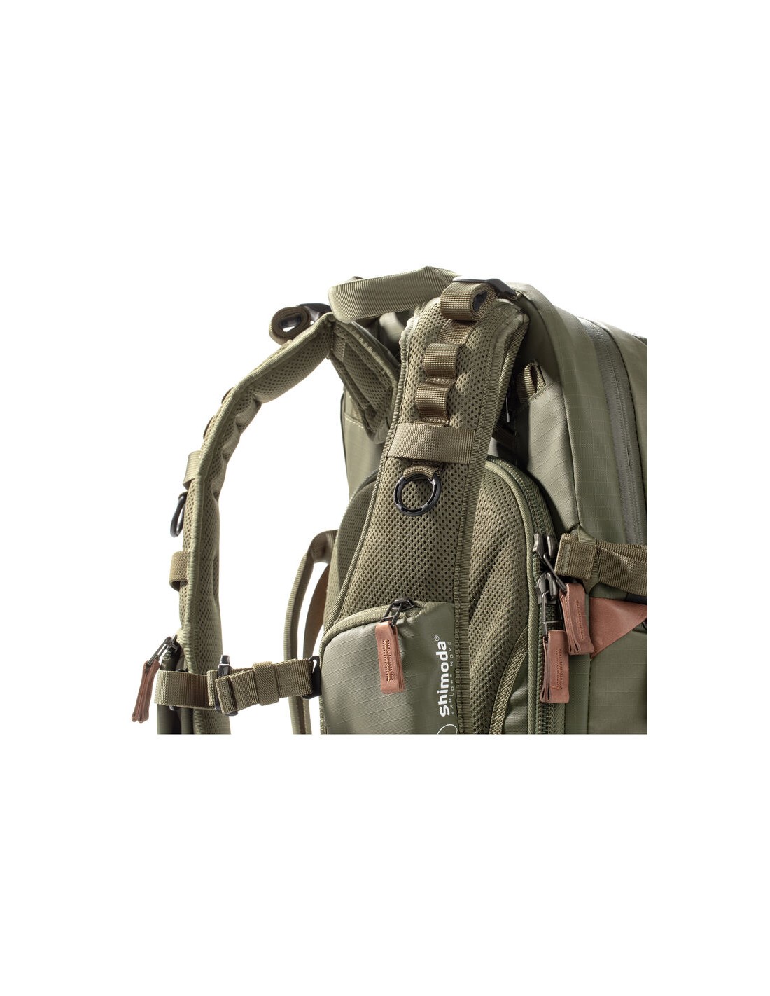 - Gli spallacci scambiabili consentono di installare cinghie Shimoda opzionali per una vestibilità migliore e più confortevole