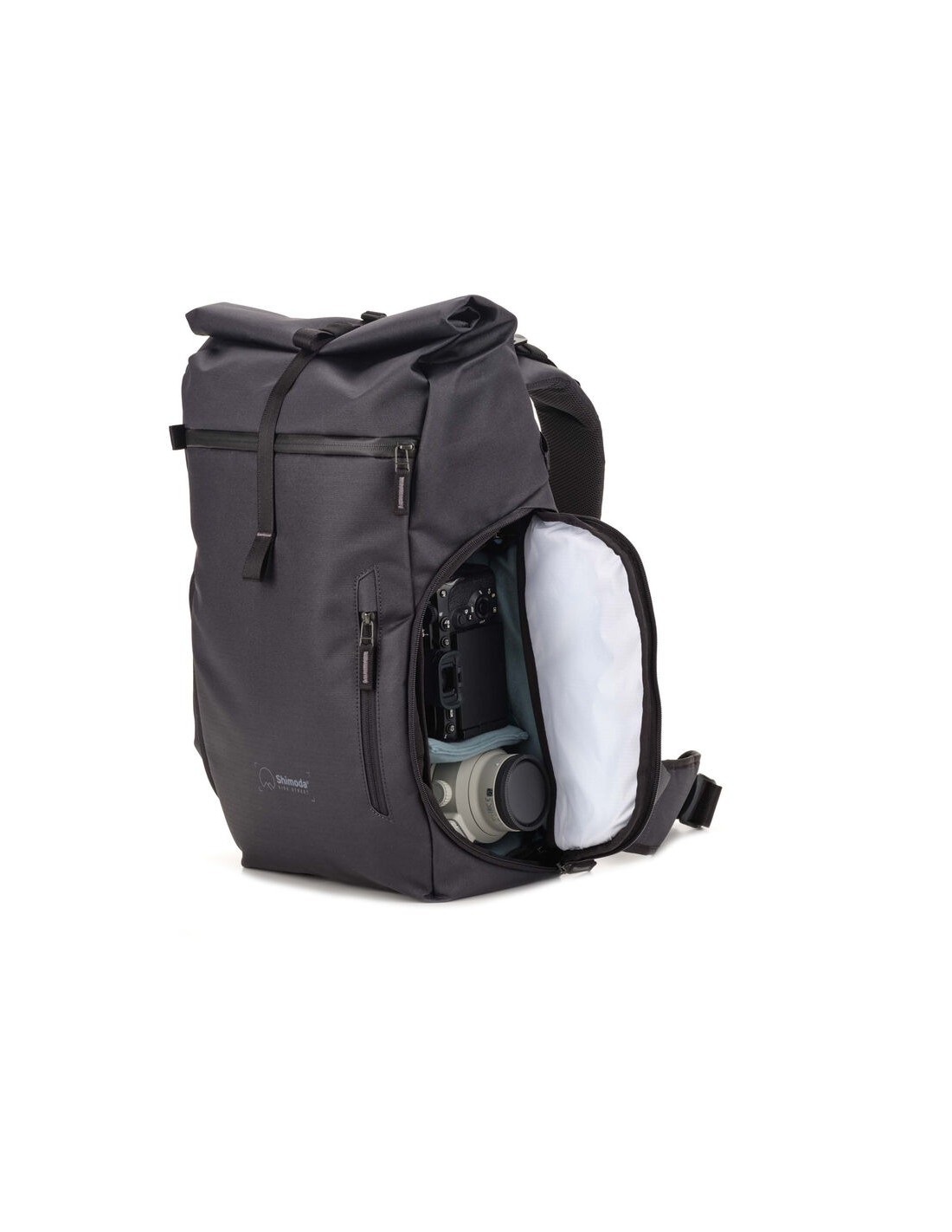 Lo Starter Kit Side Street 22 di Shimoda Designs è uno zaino efficiente che offre un rapido accesso laterale, così puoi raggiungere la tua attrezzatura in un istante senza fermarti a posare lo zaino. Il suo design discreto con chiusura a rullo garantisce che il contenuto sia nascosto alla vista in luoghi potenzialmente pericolosi. La chiusura a rullo può essere espansa secondo necessità per soddisfare le mutevoli esigenze di viaggio e di attrezzatura. Lo zaino mantiene la sua silhouette sobria e minimalista anche quando la chiusura a rullo è espansa. Incluso con il versatile zaino Starter Kit c'è un inserto per fotocamera Shimoda Medium Top Loader. Tutti gli zaini della serie Side sono compatibili con gli inserti per fotocamera Top Loader, che consentono di adattarsi a diversi scenari di ripresa utilizzando un unico sistema modulare. Il Side Street 22 ospita il Top Loader piccolo o medio, che funziona come inserto per organizzare l'interno dello zaino o come borsa a tracolla/monospalla indipendente. Può anche essere utilizzato con la cintura dello zaino come marsupio.