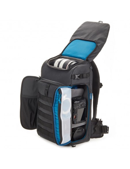 Lo zaino Axis V2 LT nero di Tenba ha una capacità di 20 litri ed è la scelta ideale per trasportare la tua attrezzatura fotografica e gli effetti personali. Questo zaino può contenere due fotocamere mirrorless o DSLR con quattro o sei obiettivi e un obiettivo montato fino a 70-200 mm f/2.8. Puoi anche riporre un laptop da 16" nell'apposita tasca. Sotto la patta superiore c'è una sezione convertibile per zaino da giorno che puoi utilizzare per altra attrezzatura fotografica, un kit per drone, cibo o una giacca antipioggia. La cinghia MOLLE esterna consente l'espansione con capsule per obiettivi Tenba Tools, custodie per batterie e porta schede di memoria, oltre a una varietà di custodie e accessori di standard militare. L'imbracatura Airflow di Tenba e le cinghie Pivot-Fit autoregolanti consentono allo zaino di adattarsi comodamente a utenti di varie taglie. Questo zaino è dotato di doppio accesso laterale per la fotocamera e c'è una tasca nascosta progettata per contenere un localizzatore personale come un Apple AirTag o un Tile Bluetooth Tracker.
