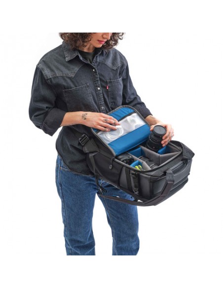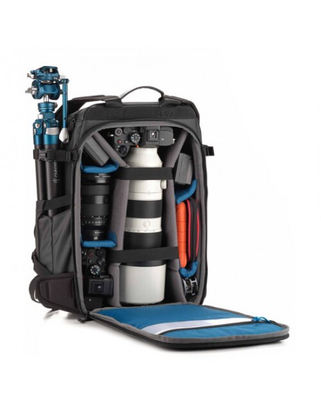 - Il comodo accesso posteriore consente allo zaino di essere appeso al corpo in modo sicuro come un banco da lavoro galleggiante e garantisce che l'attrezzatura fotografica sia fissata alla schiena, così che nulla possa essere rimosso dalla parte anteriore o laterale dello zaino durante il viaggio.
