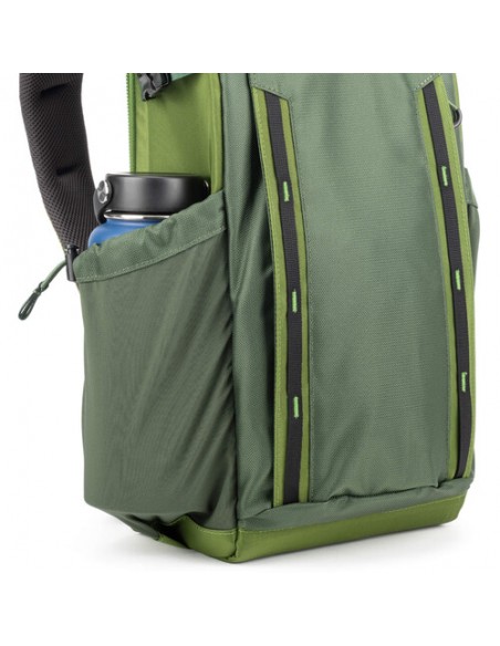 - Due ampie tasche laterali sono dotate di cordino di sicurezza e cinghie di compressione per contenere una bottiglia d'acqua da 32 once o un treppiede.