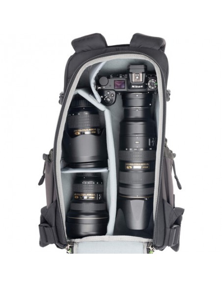 - L'accesso dal pannello posteriore aumenta la sicurezza durante i viaggi, poiché l'attrezzatura fotografica è protetta dietro la schiena.