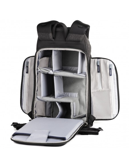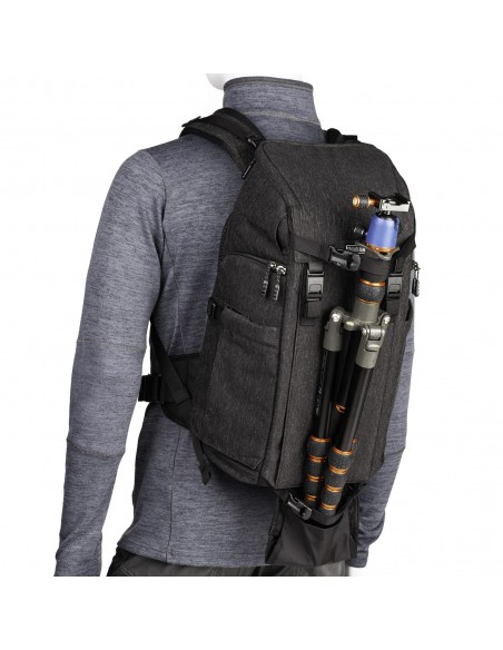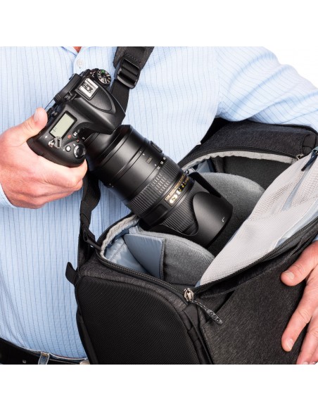I pannelli di accesso su entrambi i lati ti consentono di trasportare lo zaino a sinistra o a destra, mentre il pannello posteriore fornisce un accesso completo alla tua attrezzatura quando lavori direttamente fuori dalla borsa. Inoltre, il sistema di montaggio centrale del treppiede bilancia in modo sicuro anche treppiedi di grandi dimensioni, pur consentendo l'accesso alla tua attrezzatura. E, naturalmente, l'imbracatura è imbottita e sagomata per un comfort che dura tutto il giorno.