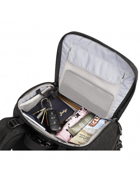 - Le tasche in rete dello scomparto superiore aiutano a mantenere organizzati i piccoli oggetti